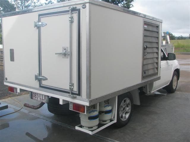Food box unit can be fitted to any 1 ton cab chases ute (vehicle not included). In most cases the springs have to be up graded to hold the weight at all times.