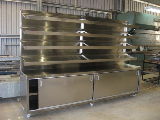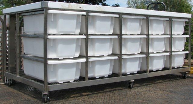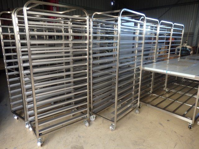 Stainless steel quality mobile construction with castors. Built to suit 16inch and 18inch trays and custom made for product size
