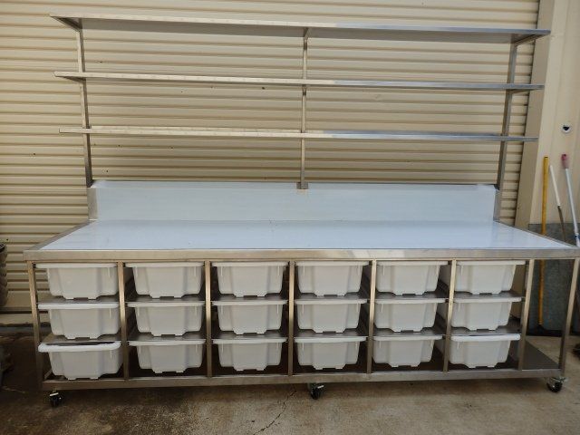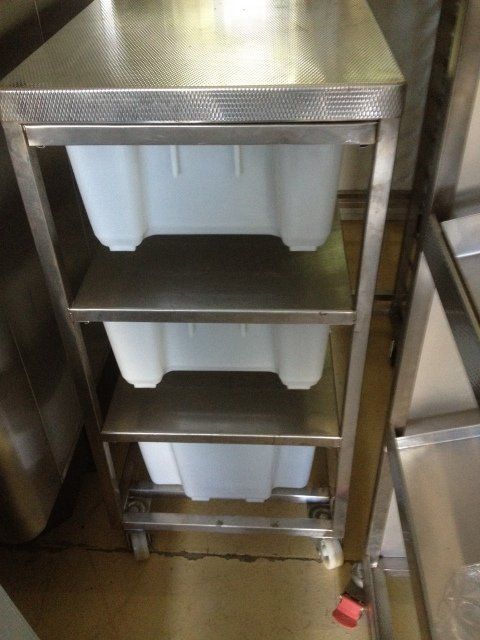 Constructed of quality stainless steel with heavy duty castors for mobility. Custom made to suit Nally bins and sealed for ingredient storage.